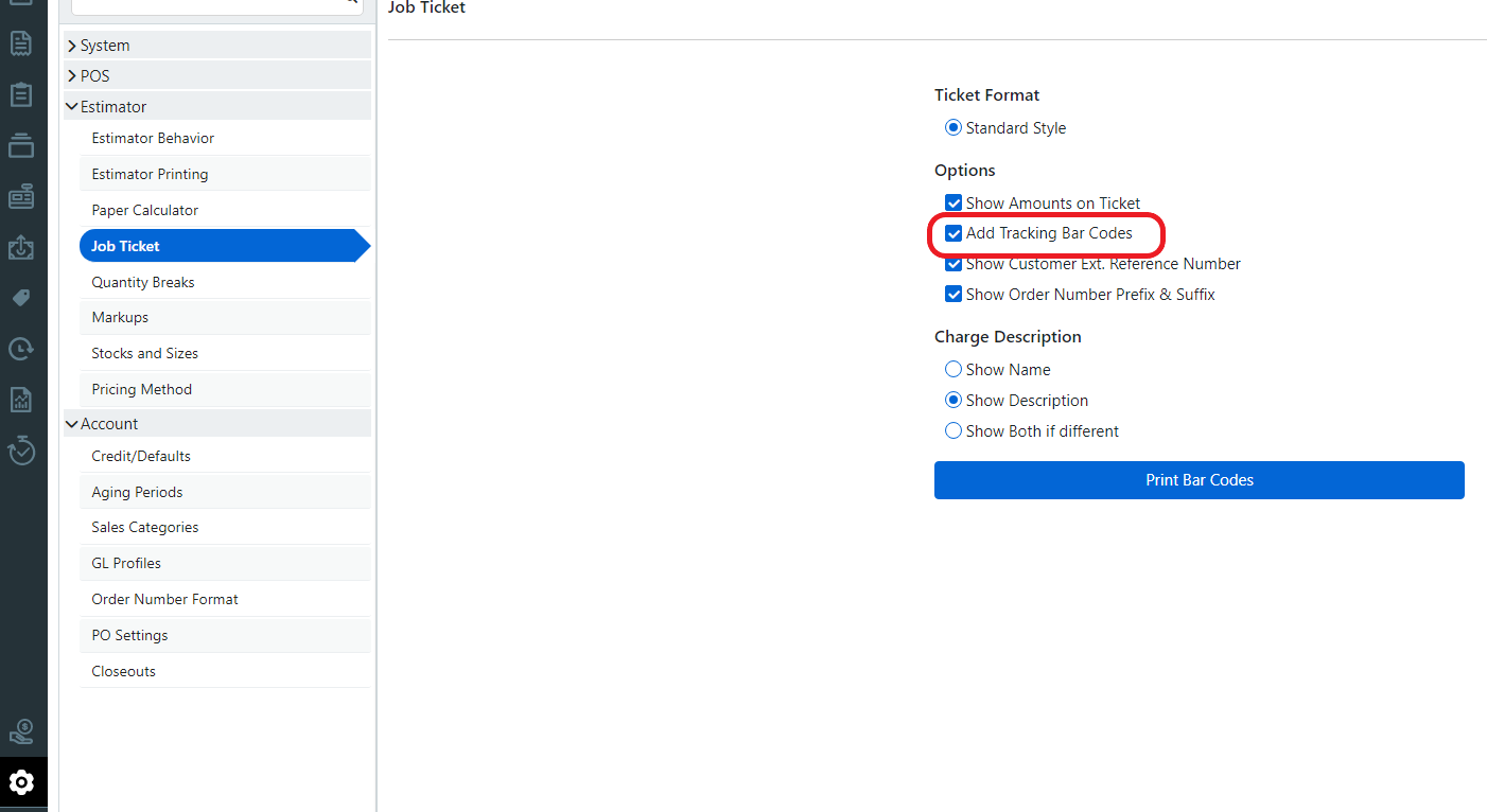 1. You will have to make sure the job ticket in Vision has barcodes visible. Gear > Preferences > Settings > Estimator > Job Ticket > Click on Add Tracking Bar Codes