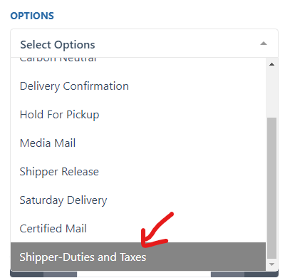 6. Select the following if you want the shipper to be responsible for Duties and Taxes