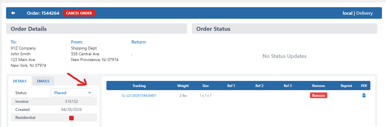 Step 5: Click the blue SHIP button to generate the label. Your company logo will appear on the label (if set up). The system will generate a Local Delivery label instead of a carrier label
